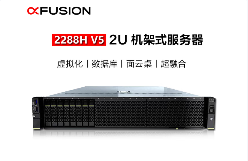 超聚变FusionServer 1288H V6是一款1U2路机架服务器,适用于云计算、虚拟化、高性能计算、大数据处理等负载的高密度部署,提升数据中心空间利用率。
